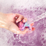 Sodium Bicarbonate, Potassium Bitartrate (vinski kamen), Sodium Laureth Sulfate, Lauryl Betaine, Zea Mays Starch (koruzni škrob), Parfum, Lavandula Angustifolia Oil (sivkino olje), Styrax Tonkinensis Resin Extract (izvleček smole benzojevca), Dipteryx Odorata Seed Extract (absolut tonke), Cananga Odorata Flower Oil (olje ylang ylanga), Titanium Dioxide, *Benzyl Benzoate, *Cinnamal, Coumarin, *Limonene, *Linalool, CI 77007, CI 45410:1, CI 45410:2, CI 17200, CI 42090, CI 42090:2, CI 45380:2