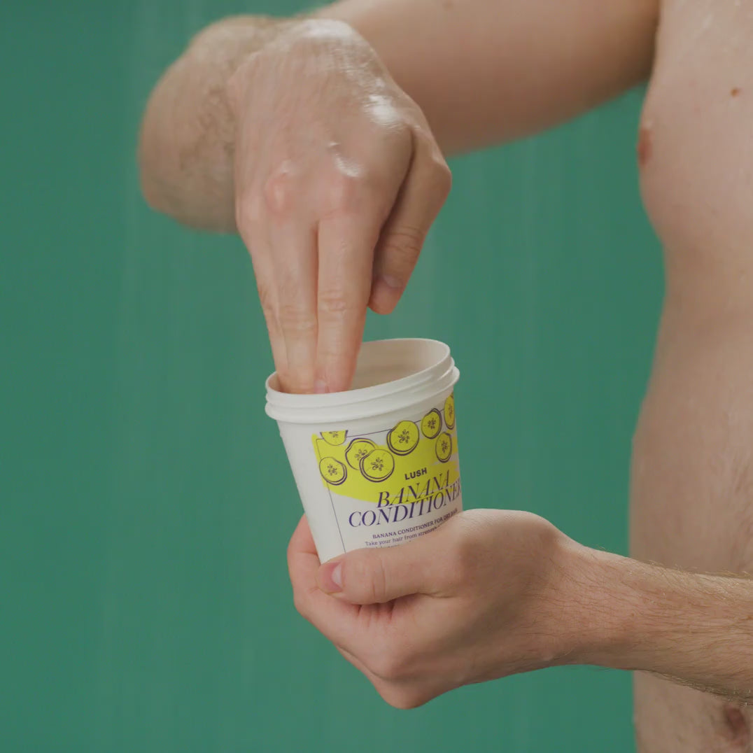 Aqua (voda), Gelidium Cartilagineum Extract (gel agar agarja), Propylene Glycol, Cetearyl Alcohol, Prunus Amygdalus Dulcis Seed Extract (mandljevo mleko), Sodium Lauryl Sulfate, Musa Paradisiaca Fruit (organske sveže banane iz pravične trgovine), Olea Europaea Fruit Oil (organsko ekstra deviško olivno olje), Parfum, Argania Spinosa Kernel Oil (arganovo olje), Theobroma Grandiflorum Seed Butter (Cupuaçu maslo), Soymilk Ferment Curd (organski sojin jogurt), Dipteryx Odorata Seed Extract (absolut tonke), Vanilla Planifolia Fruit Extract (absolut vanilije), Cetrimonium Chloride, Coumarin, Methylparaben, Propylparaben